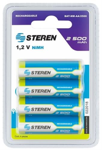 Descripción: PAQUETE DE 4 PILAS RECARGABLES AA NIMH DE ALTA CAPACIDAD 2500 MAH